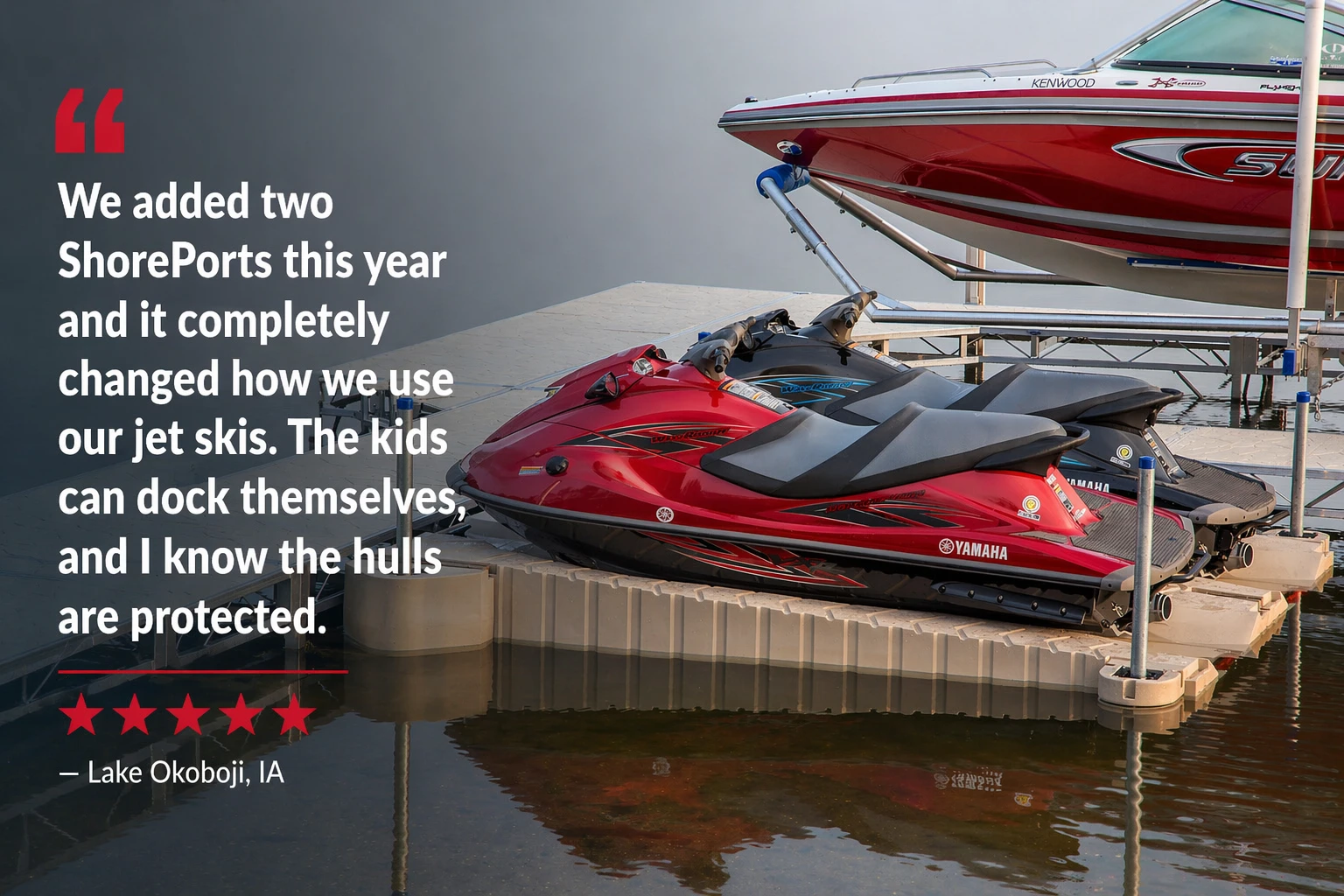 Drive on, dock in seconds, and walk away knowing your PWC is protected from algae buildup, hull damage, and unnecessary wear. ShorePort keeps your jet ski high, dry, and always ready for the next ride.